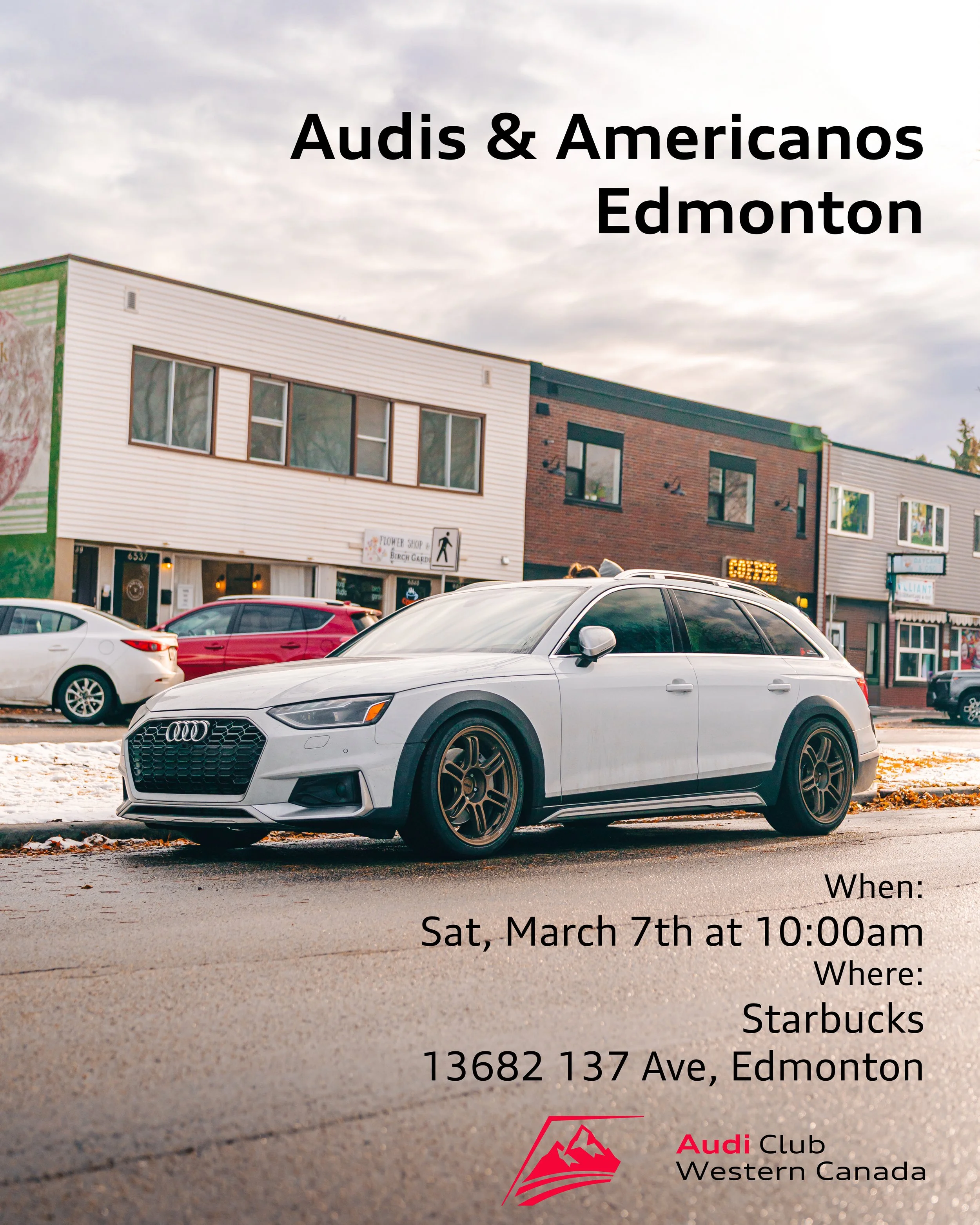 • Audi Club Western Canada 13682 137 Avenue NorthWest Edmonton, AB, T5L 2B3 Canada (map)